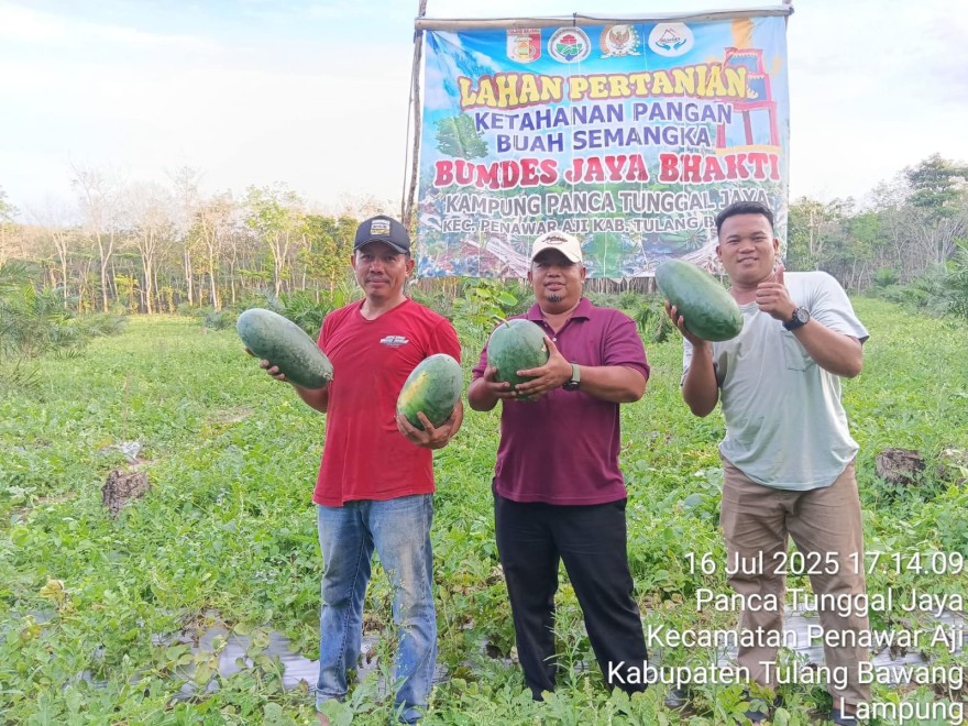 Badan Usaha Milik Kampung (Bumkam) Jaya Bhakti menunjukkan komitmennya dalam mendukung ketahanan pangan dan pemberdayaan ekonomi masyarakat. Pada tahun 2025 ini, Bumkam Jaya Bhakti berhasil memanen semangka dari lahan pertanian yang dikelola melalui program ketahanan pangan kampung alokasi Dana Desa di tahun ini berhasil panen semangka untuk pertama kalinya.